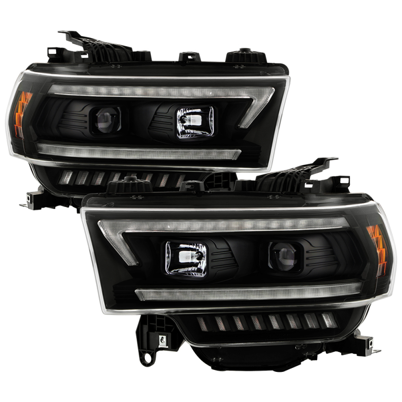 Dodge Ram 2500 Headlight Set - SPYDER - Projector, Sequential LED Turn Signal Lights, Halogen Model Only - Black - `19-`22
