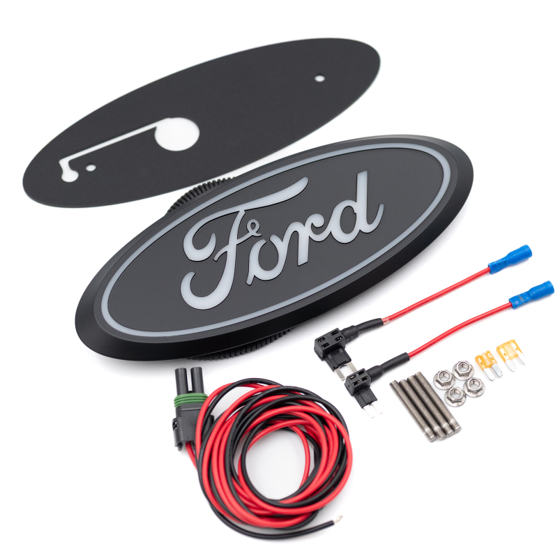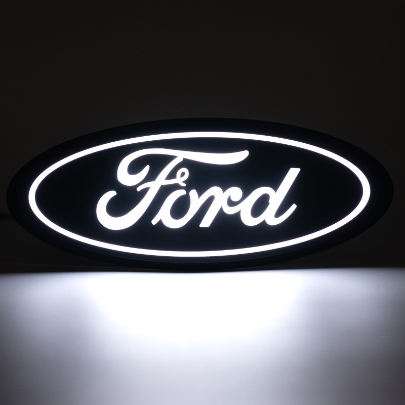Enhance the visual appeal of your Ford truck by replacing its standard blue factory front grille emblem with the newly introduced illuminated Ford LED oval emblem.