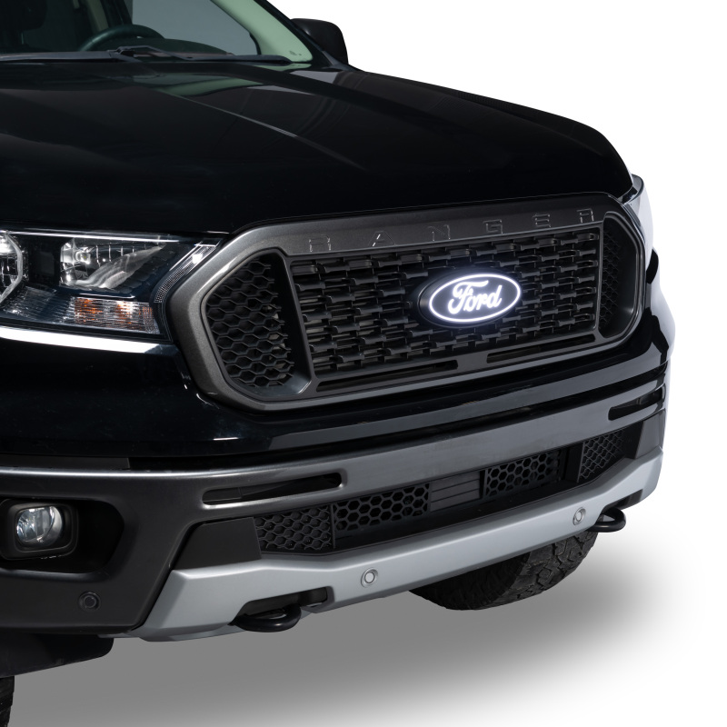 Available for Ford F150, Super Duty, and Ranger, this new Luminix Ford LED Emblem will undoubtedly turn heads. It is officially licensed and patented, with a patent number of 11,371,688 B1.. Upgrade your Ford truck by replacing its' factory front and rear emblems with Putco's official Ford licensed LED emblems. This next installment in the Luminix line of products seamlessly replaces the OEM Ford emblems using the original mounts. Installation is quick and easy, all wiring is plug & play and routes directly to the fuse box. The IP69K rated emblem is tough and durable, designed to withstand the elements and provide a unique signature look to your vehicle. With this LED emblem you can set your vehicle apart from rest in no time. Withstand the elements: IP69K rated for high temperature and high water pressure. Putco’s LED emblem is injection molded, providing a UV-resistant and chipping-resistant construction that delivers a long-lasting performance.. IP69K Rated: "IP" refers to the product’s ability to resist ingress of dust. In contrast, the "69K" refers to the product’s ability to resist ingress of high temperature (Steam) / high-pressure water.. Camera Compatibility: The Putco Luminix Ford LED emblem fits directly into OEM post mounts and is fitted perfectly for easy installation, allowing full use of the camera and camera washing components.. Head Turning Startup Sequence: Putco’s LED emblem begins illuminating with an eye-catching startup sequence at a 6,500K color temperature. The sequence starts upon engine ignition.. State-of-the-art Manufacturing: Chip-on-board LEDs layout for a bright and crisp illumination day or night.. Officially Licensed: Available for F150, Super Duty, Ranger, Maverick, Explorer, and Expedition!. Matte Black Finish: UV-resilient and chip-resistant construction via injection molding.. Stand Out Brightness: The lighted oval is rated 6,500K White LED output.. Putco Luminix White LED Oval Light Up Grille Emblem - Ford Ranger 19-24. Putco 19-23 Ford Ranger Front Emblem Luminix Ford Led Grille Emblems. Wiring: Easy Plug & Play with installation into the fuse box.. Designed in the USA: Putco Inc., Des Moines, IA.. Luminix Ford LED Emblems; Front; White;. Luminix Ford Led Grille Emblems. Signature Start Up Sequence. Luminix Ford LED Emblems. PATENT 11,371,688 B1. Emblem