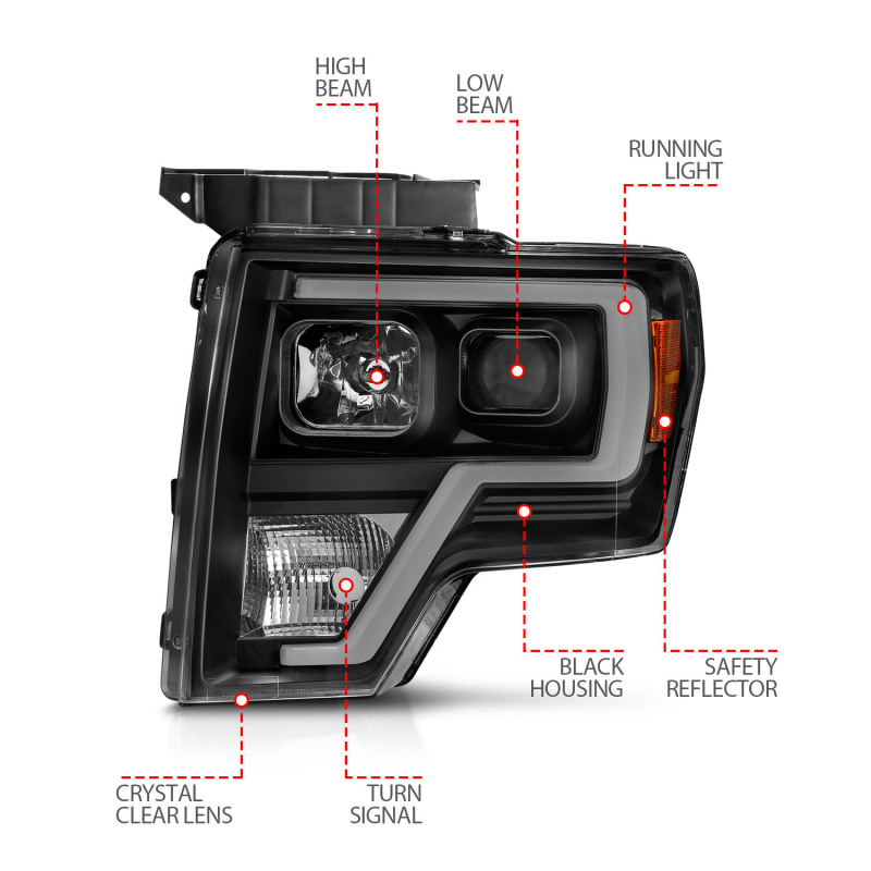 Ford F-150 Projector Headlights - ANZO - Light Bar H.L. - Black Amber - `09-`14