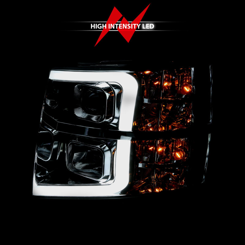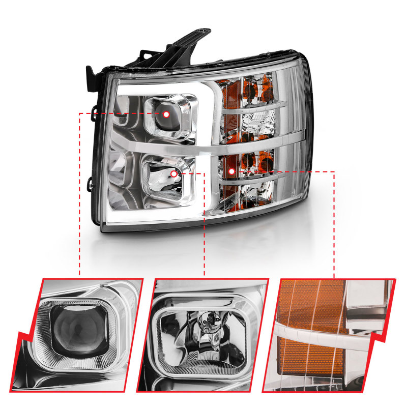 Chevrolet Silverado 1500 Projector Headlight Set - ANZO - Plank Style - Chrome with Amber Housing - `07-`13
