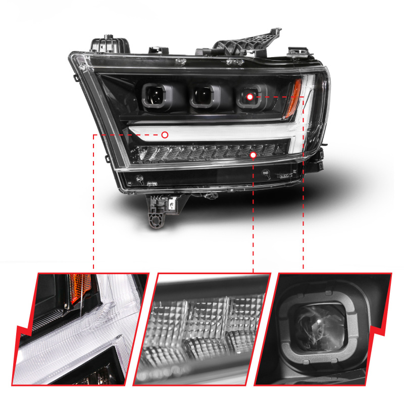 Ram 1500 Headlights - Driver Side - ANZO - Full LED Proj Headlights DRL/SeqSig - Black - `19-`24