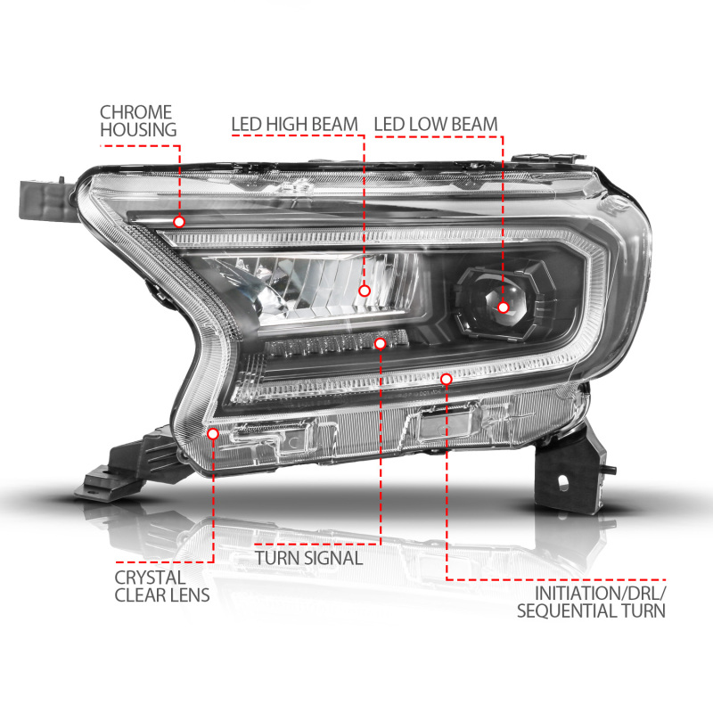 Ford Ranger LED/Projector Headlights - ANZO - Full LED Proj Init/DRL/SeqSig - Black - `19-`23
