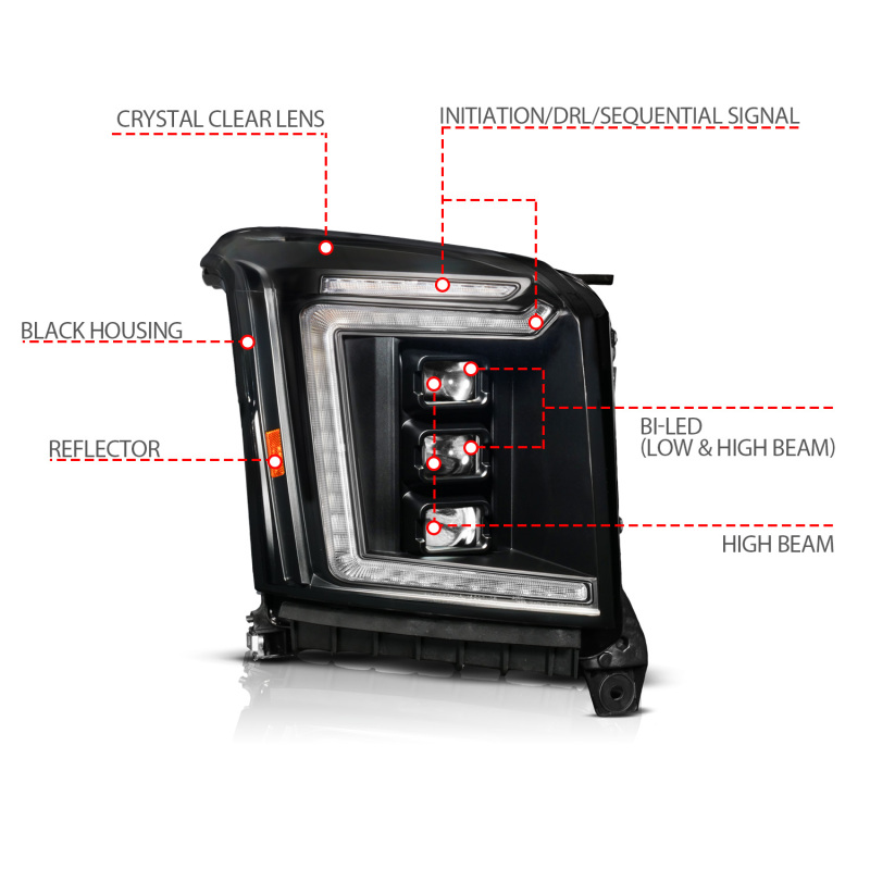 GMC Yukon LED/Projector Headlights - Passenger Side - ANZO - Full LED Projection - Black - `15-`20