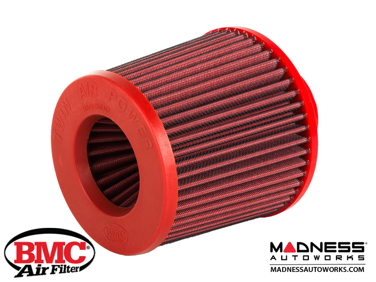 BMC direct induction conical filters are manufactured using a characteristic red rubber that allows the connection of the intake to be particularly resistant to both engine stress and heat without suffering from deformations caused by the high temperature. The special filtration mesh allows the production of filters with a power up to 700 HP without presenting problems of filter deformation.