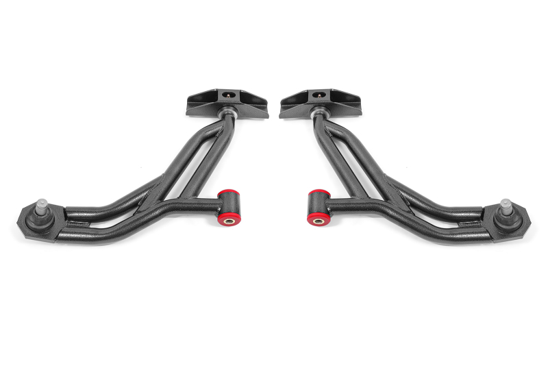 Fabricated from heavy-duty 1.25-inch, 0.120-inch wall DOM tubing, BMR's AA755 Lower A-arms ensure exceptional durability and performance. The greasable heavy-duty ball joints and Delrin bushings handle high loads effortlessly and deliver noticeable improvements in steering feel and response. Zinc-plated, heat-treated, chrome-moly rod ends provide loads of adjustability, perfect for various driving styles, from street performance to pro-touring.