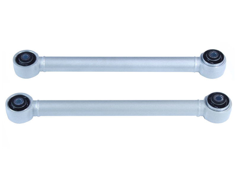 Introducing the Ford Mustang Control Arms (2) - Rear - Whiteline - Fixed Position - `05-`14, an essential upgrade for those seeking enhanced performance and reliability. Specifically designed for the 2005 to 2014 Ford Mustang models, these control arms address common issues such as traction loss and wheel hop, delivering a more stable and responsive driving experience.