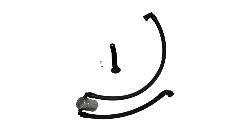 During the process of venting crankcase pressure back through your intake track, large amounts of oil, in the form of vapors can gather/accumulate in your intake tube, intake manifold runners and even dilute your gas, lowering its octane level. This happens on all engines and is even worse with forced inducted vehicles (supercharged and turbocharged) as crankcase pressures are increased. To combat this, we have developed an oil separator of our own design. Milled from solid billet aluminum this is a rock-solid piece. It has a knurled tank base for easy removal to drain the spent oil and an O-ring seal to prevent any leaks.