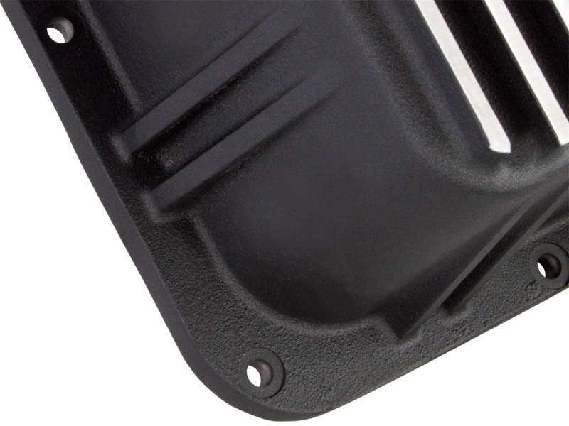 aFe POWER Pro Series deep transmission pan brings performance engineering to the protection of your trucks transmission. This transmission pan has additional capacity for 3 to 4 more quarts over stock at the factory line, a magnetic drain plug and a 1/8" NPT port for your temperature sensor. Built-in internal and external fins transfer heat from the fluid to the outside air for maximum cooling. This transmission pan is constructed out of durable die-cast aluminum with reinforced ribs and a wrinkle black powder-coating for maximum strength and styling.. aFe POWER Pro Series Transmission Pan Black w/ Machined Fins GM Diesel Trucks 01-19 V8-6.6L (td) LB7/LLY/LBZ/LMM/LML/L5P. aFe Power Cover Trans Pan Machined Trans Pan GM Diesel Trucks 01-12 V8-6.6L Machined. aFe POWER Pro Series Transmission Pan Black w/ Machined Fins. Pro Series Transmission Pan Black. 1/8 in. NPT Temp Sensor Port. Internal And External fins. A100/Allison Transmission. Added Fluid Capacity. Magnetic Drain Plug. Auto Trans Oil Pan. Transmission Pan. Machined Fins. A/TOilPan. Aluminum