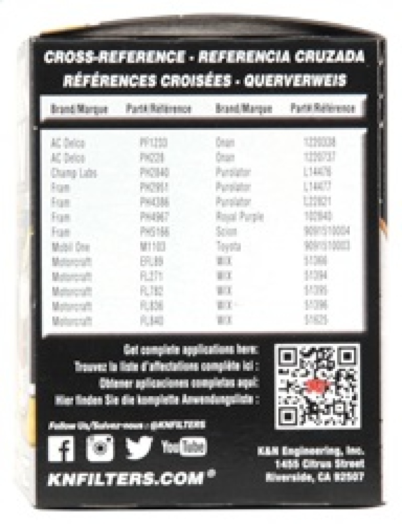 K&N premium oil filters are meticulously engineered to offer outstanding filtration and engine protection. Designed to operate with all synthetic, conventional, and blended motor oils, K&N's pleated synthetic-blend filtration media helps to shield your engine from contaminants and ensure a consistent flow of oil. The heavy-duty canister is engineered to be exceptionally durable, and a one-inch welded hex nut can be used for quick and easy filter removal. Each filter is specifically designed to withstand the service intervals recommended by vehicle manufacturers, and is protected by the K&N 1-Year Limited Warranty.. K&N Wrench-Off oil filters are engineered to help ensure high flow rates and exceptional protection from contaminants. Each filter comes with a hex nut welded to the top of the canister, allowing for easy removal with a standard wrench.. K&N 03-09 Scion tC / 00-05 Celica GT/GT-S Performance Gold Oil Filter. Anti-Drain Back Valve - Where Applicable - Eliminates Dry Starts. 1-Year Limited Warranty. OIL FILTER; AUTOMOTIVE. Engine Oil Filter. Oil Filter