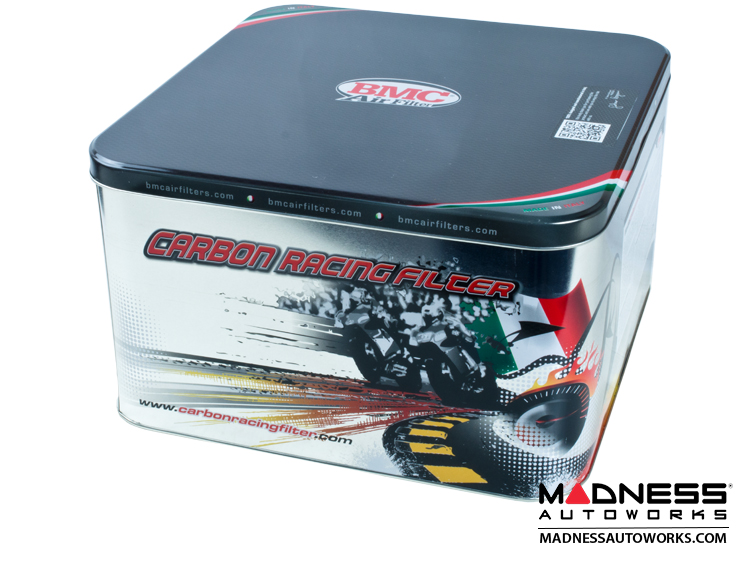 The BMC air filter is composed of a metallic mesh covered by an oiled multi-layer cotton filtration material. This guarantees a high level of filtering efficiency and a limited loss of air pressure. The oil used gives the material its "sticky" adhesive characteristic which aids in the retention of air impurities, without compromising or blocking air flow penetration. This also creates a continuous filtering process. The cotton filtrating element is contained within an external support frame which interfaces with the air box and allows it to be securely installed in the air-box. Every stage of the production process (from design to manufacturing) is carried out in Italy by Italian engineers using the finest materials.