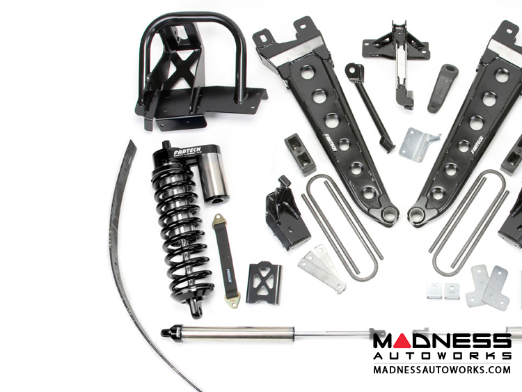 Ford F-250 8" Radius Arm ADD-A-Leaf System w/ Dirt Logic 4.0 Resi Front Coilovers and Rear 2.25 Shocks by Fabtech (2011 - 2016) 4WD - With Factory Overload