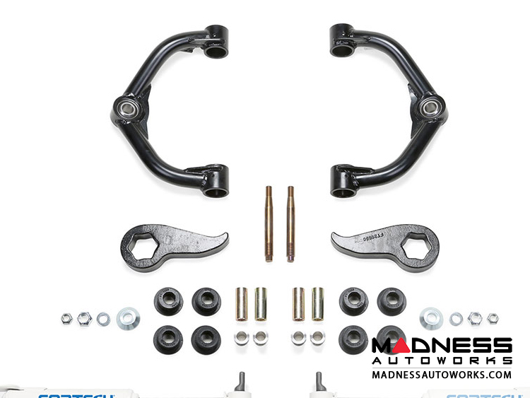 Add this 3" UCA Uniball Lift Kit by Fabtech to your Sierra for an added 3" in height!