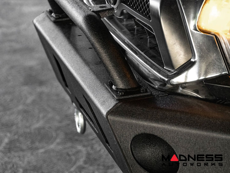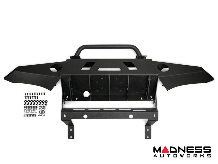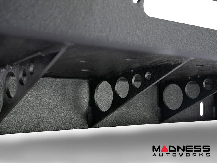 DV8 truck bumpers are a modular 3-piece design made with high tensile strength 3/16-inch steel and reinforced with 1/4-inch steel in key areas which allows them to take a beating.