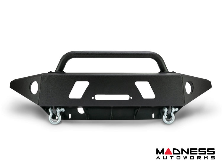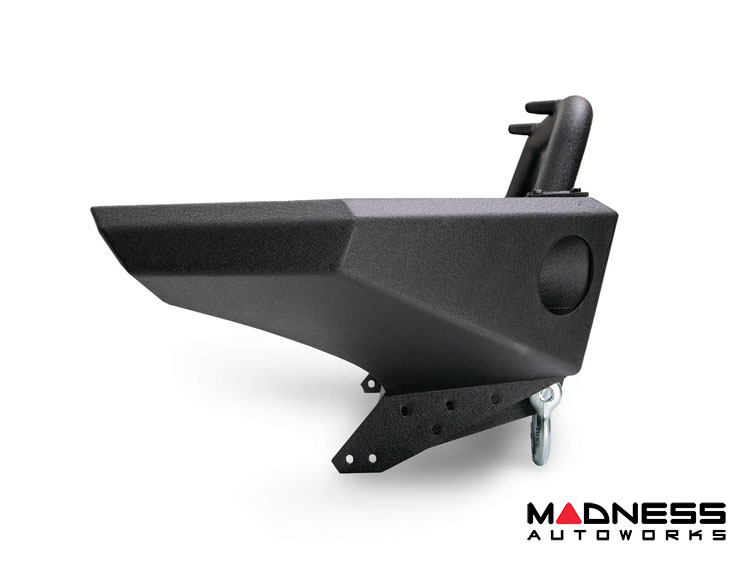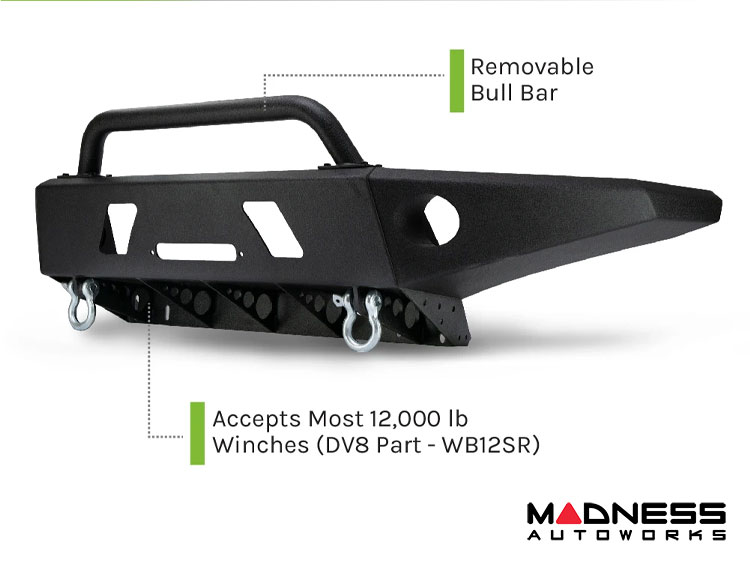 This Bumper accommodates most winches up to a 12,500 lb rating. There are 2 recessed mounting points for 3.5-Inch Round LED Lights.
