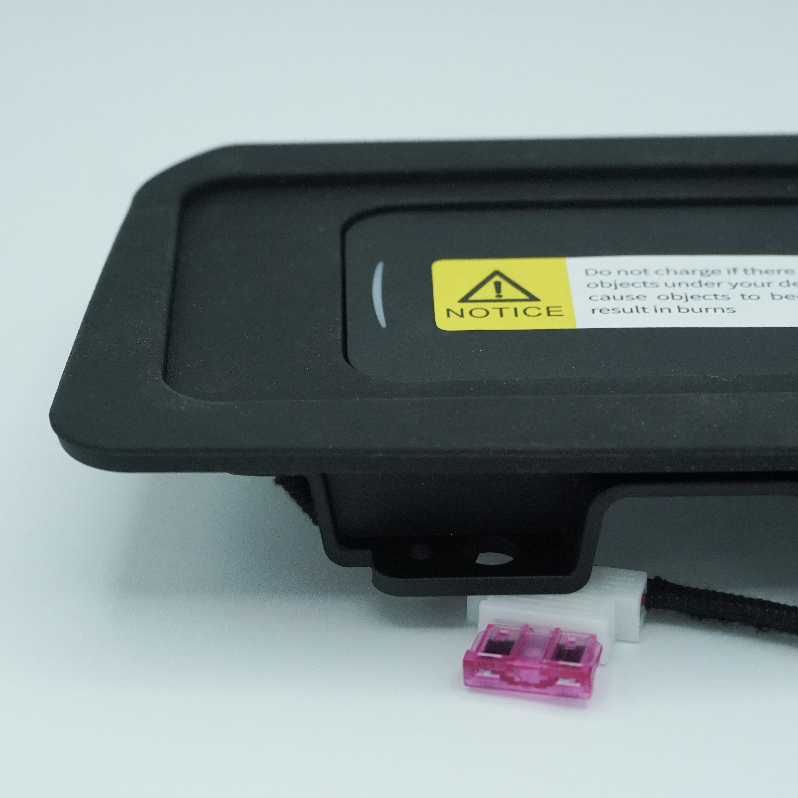Installation is a breeze, with no complex wiring or modifications required. This Charging Pad is designed to fit perfectly into the front center console of your Ford Bronco. It seamlessly integrates into the console, maintaining the sleek and stylish aesthetic of your vehicle's interior. The pad is engineered with precision and durability in mind, ensuring a secure fit and long-lasting performance.
