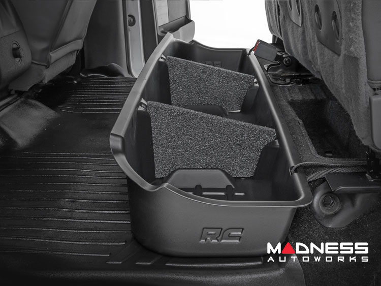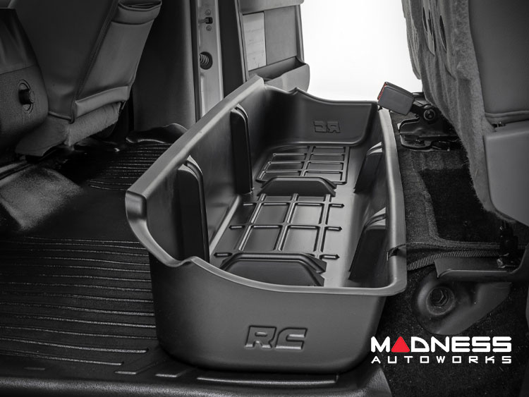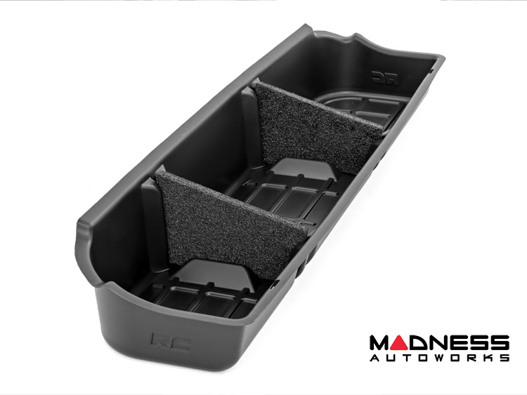 Clean up the contents of your cab with Rough Country’s Custom-Fit Under Seat Storage Compartment.