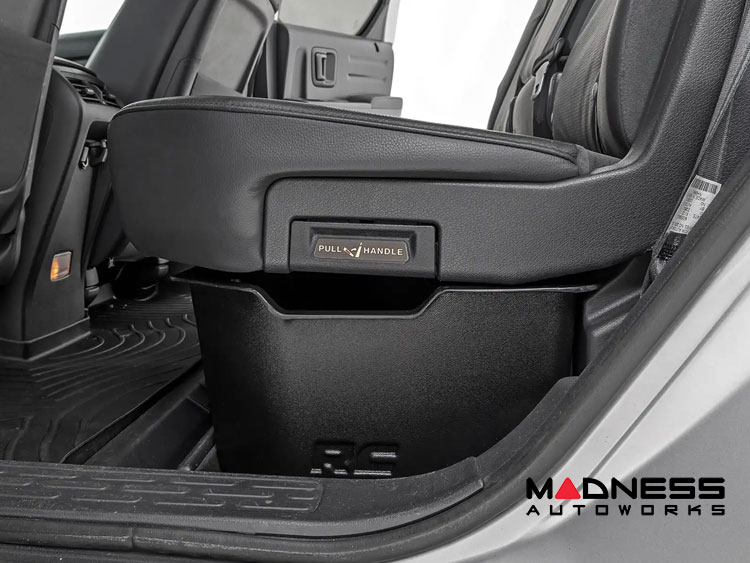Clean up the contents of your cab with Rough Country’s Custom-Fit Under Seat Storage Compartment.