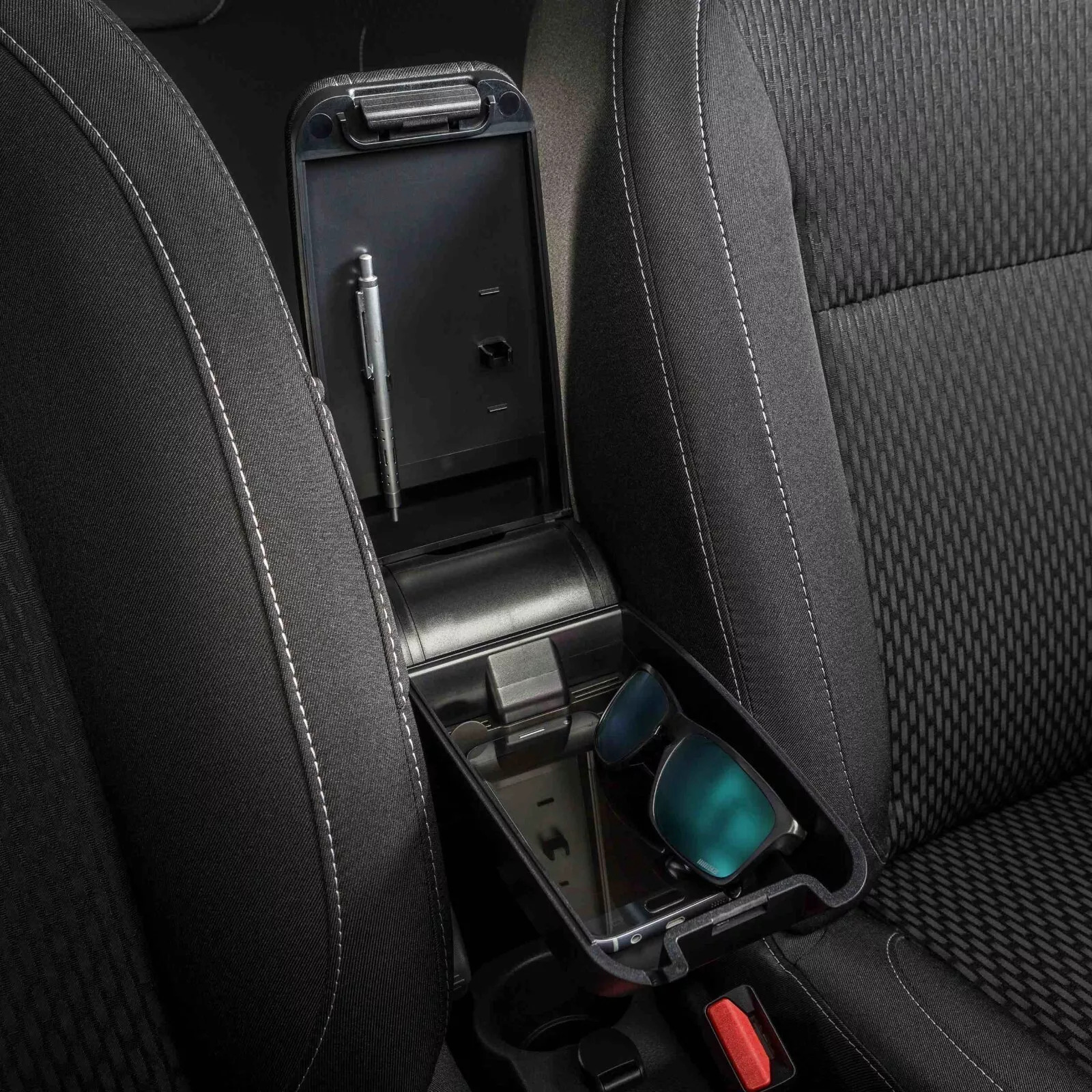 The Chevy Trax Armrest - Seat Mounted with Storage Compartment - Vegan Leather Lid is the perfect addition to your Trax to enhance your driving experience.