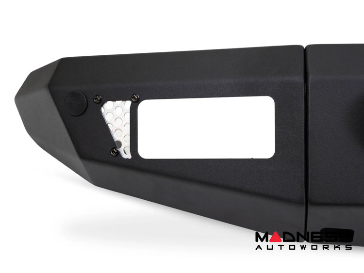 Made from high-grade steel and finished in a durable micro-texture black powder coat, this bumper not only enhances the look of your rig but also provides optimal protection. The low-profile design improves the approach angle for off-road adventures, while the paintable mesh accent panels add a stylish touch that will make you stand out on the trail.