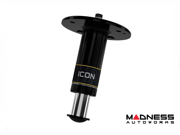 Designed as an OEM replacement, the installation of the ICON hydraulic bump stops is straightforward and requires no special modifications. Simply mount them atop the rear coil springs using the included brackets, and you're set for an enhanced off-road experience. The factory rubber bump stops typically have limited energy absorption and a rapid energy release upon rebound, leading to a harsh ride and poor handling in rough terrain. In contrast, ICON hydraulic bump stops manage energy absorption and release more efficiently thanks to the digressive rebound piston valving, providing predictable handling and vehicle dynamics.