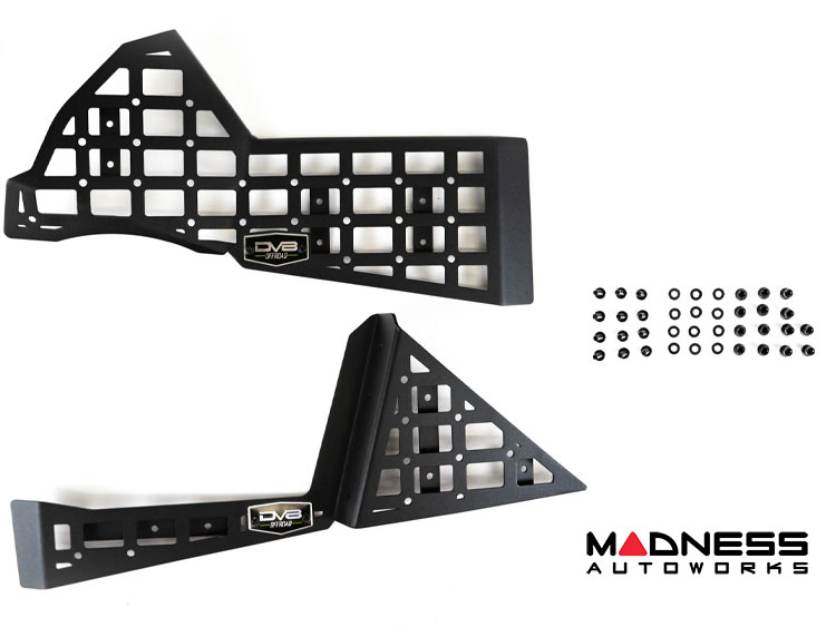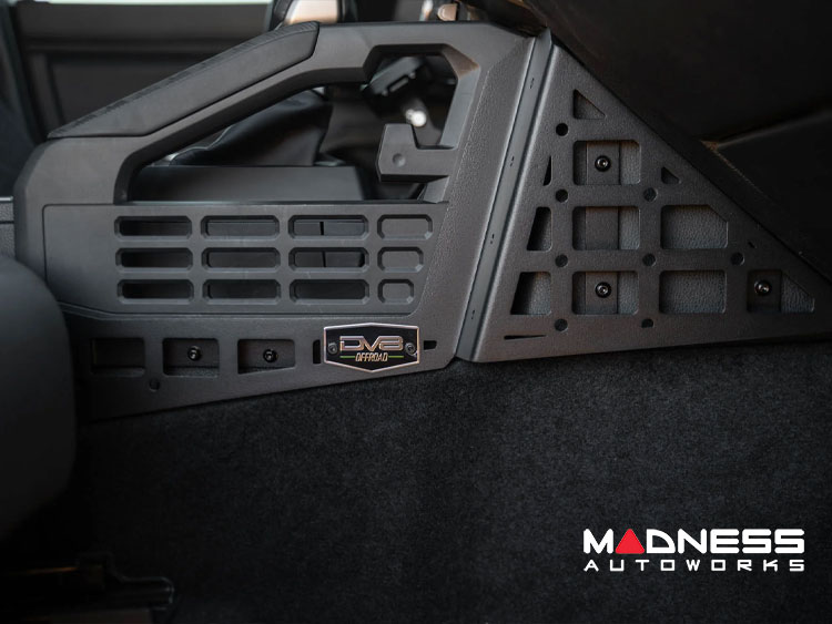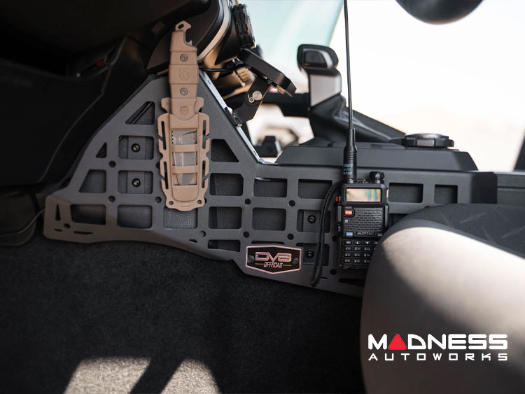 Improve your interior storage capabilities with this 4th Gen Toyota Tacoma Center Console Molle Panels and Device Mount. This versatile organization system allows you to mount multi-tools, med kits, sheaths, holsters, and other molle accessories to the driver and passenger side panels for quick access to your daily gear. You'll find the tops of the panels are equipped with M5 PEM nuts compatible with Bulletpoint and RAM Mounts, so you can keep your smartphone, GPS, radio, or tablet in a convenient and accessible location.