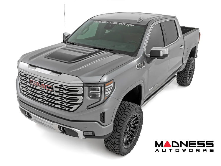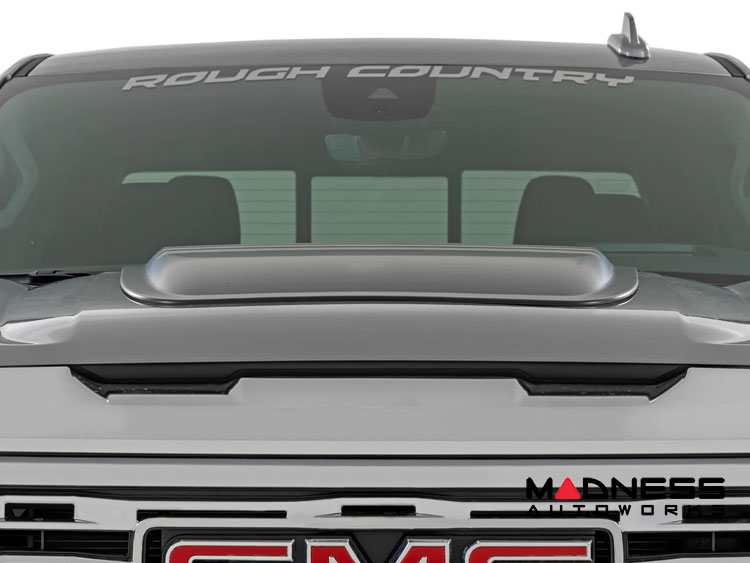 Unleash the true potential of your GMC Sierra 1500 and transform it into an unmistakable force on the road with the Rough Country Hood Scoop - Add On.