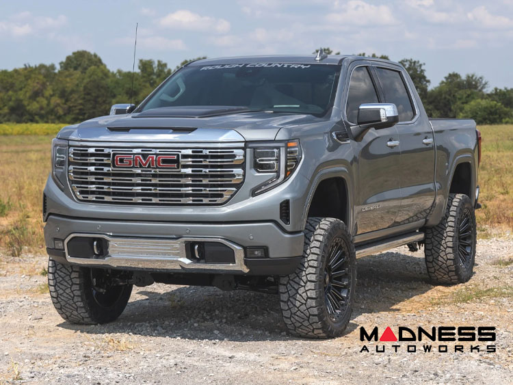 This exceptional accessory is crafted to seamlessly integrate with your truck’s existing aesthetics, offering a perfect blend of style and resilience that stands the test of time. Whether you're cruising urban streets or tackling rugged off-road environments, the Rough Country Hood Scoop ensures your Sierra doesn't just move—it commands attention.