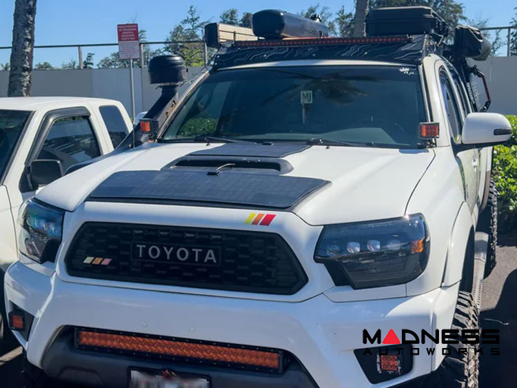 Toyota Tacoma Flexible Solar Panel Kit - Complete Kit w/ Waterproof Controller + Hood Decal - 2nd Gen w/ Hood Scoop - 60W