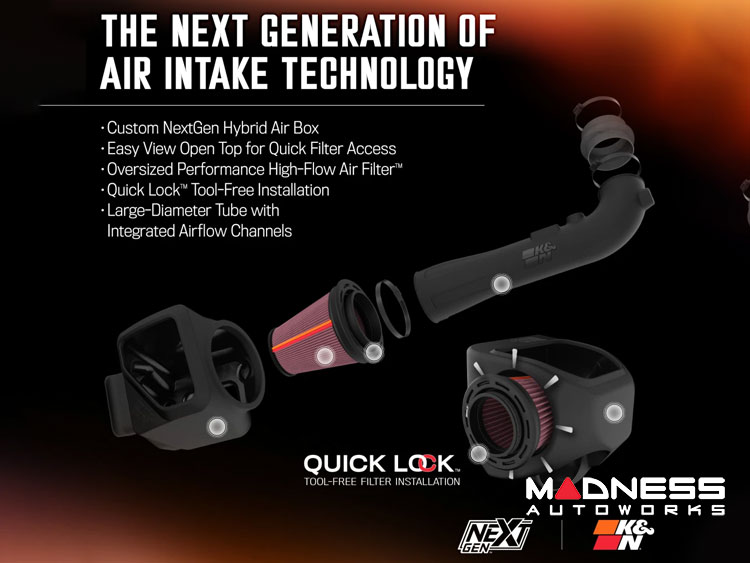 Discover unparalleled performance enhancement with the K&N NextGen Cold Air Intake. If you have any questions or need further information, feel free to call us directly at 512-982-9393 (Austin, TX) or 562-981-6800 (Los Angeles, CA). We offer professional installation and customization services at both our Austin, Texas and Los Angeles, California locations, ensuring your upgrade experience is seamless and satisfactory.