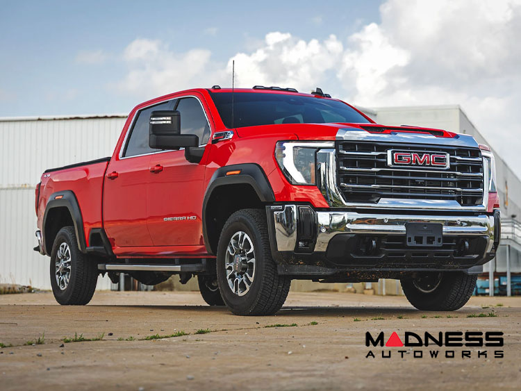 Introducing the GMC Sierra 2500/3500 Sport Fender Flares, designed to give your GMC Sierra a bold and rugged look while providing unmatched protection against road elements. These flares not only upgrade the appearance of your truck but also ensure durability and functionality.