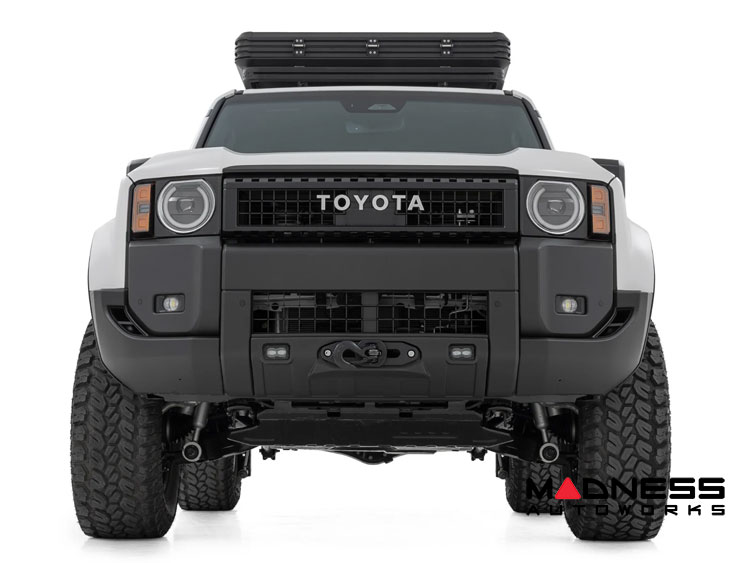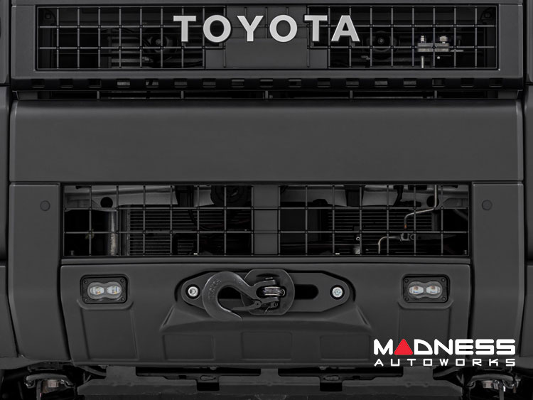 Maximize your off-road adventures with the Toyota Land Cruiser Winch Mount - Hidden - Rough Country - Yellow SAE Fog Lights. For any questions or further assistance, feel free to reach out to us at 512-982-9393 for our Austin, Texas location or 562-981-6800 for our Los Angeles, California area location. We are also proud to offer installations and customization services at both of these locations, ensuring a perfect fit and finish for your upgrade needs.
