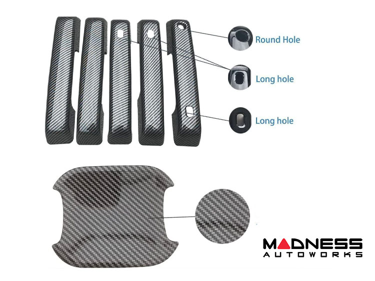 Note: Some images show the Carbon Fiber Door Handles without Keyless Entry. These handles will have cut outs for the Keyless Entry Buttons.