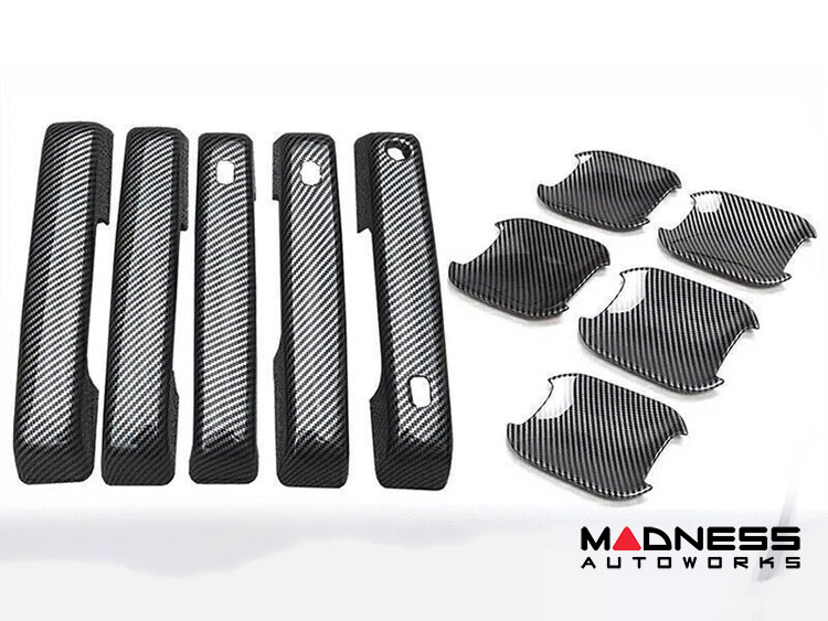 Ford Bronco Door Handle Cover Kit - 4 Door Handle Covers + 4 Door Bowl Inserts - Matte Carbon Fiber - 10 PCS - w/ Keyless Entry