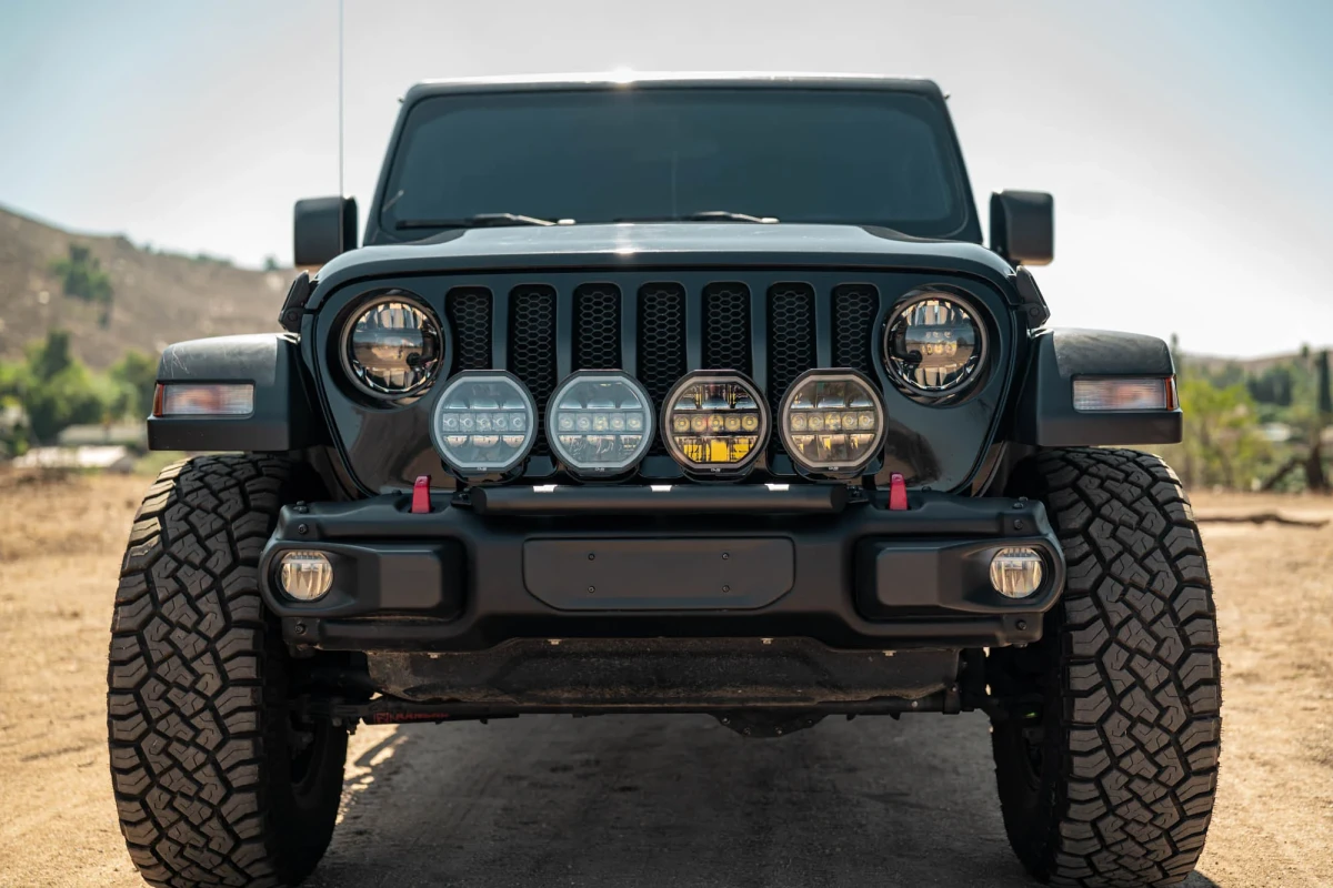 - Accommodates various lighting configurations: one 20" light bar, up to eight 3" pod lights, or four 7" round lights