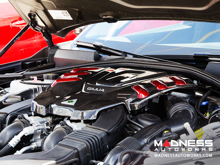 Alfa Romeo Giulia Engine Cover - Carbon Fiber - QV Version - Red Candy Accents