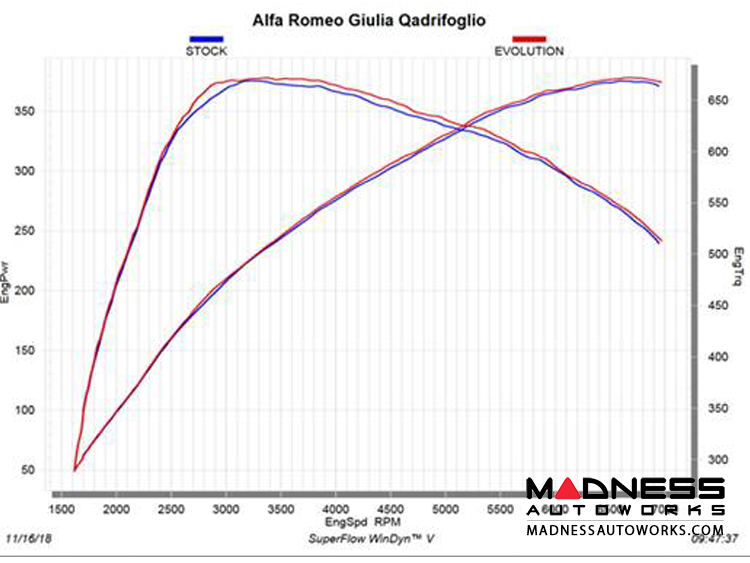 • The Evolution Line (Titanium) exhaust system fits directly onto the Giulia Quadrifoglio’s stock downpipes.