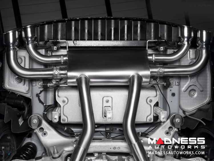 Featuring an axle-back design with vacuum operated valves, this exhaust system allows you to fine-tune the sound to your preference. The round carbon fiber quad tips with a diameter of 2x100 mm add a sporty and stylish touch to your vehicle.