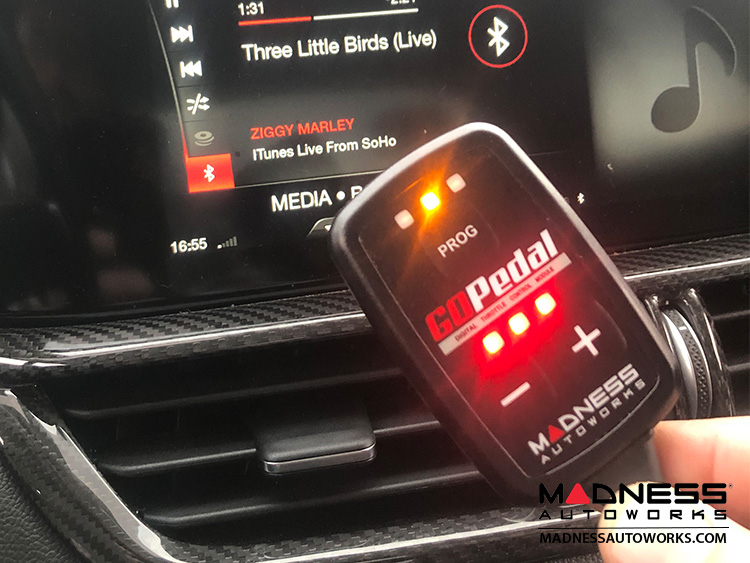 The MADNESS GOPedal is designed to reduce initial lag felt in today's drive by wire vehicles like the Stelvio by allowing you to advance your throttle’s timing to give you a more direct response for a much improved feel.