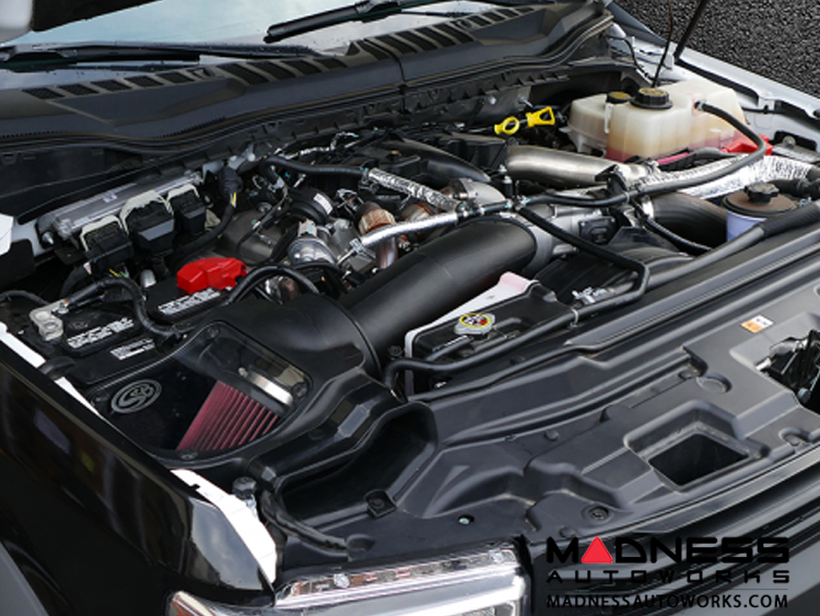 Our cold air intake for the 2017-2018 Ford Powerstroke 6.7L was engineered to minimize air restriction and flows 55.97% better than stock. This kit comes with a fully enclosed airbox that protects the filter from dirt and keeps out engine heat.