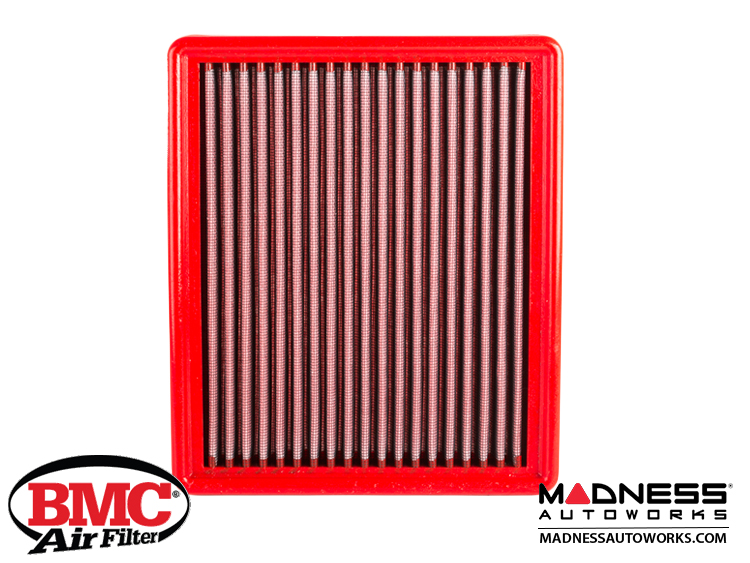 The BMC air filter is composed of a metallic mesh covered by an oiled multi-layer cotton filtration material. This guarantees a high level of filtering efficiency and a limited loss of air pressure. The oil used gives the material its "sticky" adhesive characteristic which aids in the retention of air impurities, without compromising or blocking air flow penetration. This also creates a continuous filtering process. The cotton filtrating element is contained within an external support frame which interfaces with the air box and allows it to be securely installed in the air-box. Every stage of the production process (from design to manufacturing) is carried out in Italy by Italian engineers using the finest materials.
