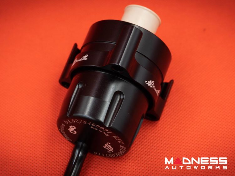 The Alfa Romeo Giulia uses an ECU controlled solenoid diverter valve. However, there are areas where these valves can be improved upon. The 2 most common problems with the OE solenoid diverter valves are that the diaphragm inside of the valve is prone to rupturing when boost and temperature increase. The second design flaw is the OE plastic piston often leak right out of the box due to improper tolerances and don't seal well after a high-boost gear shift.