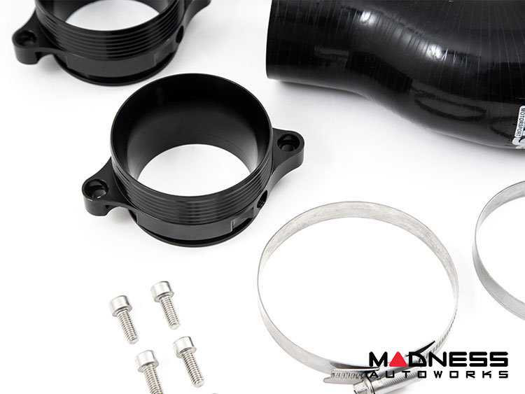 Finished with a gloss black anodized finish to prevent oxidization and give it a quality OEM look. The kit also incorporates 2 x 1/8th" NPT water meth bosses into the design for tuners to keep the inlet air temperatures on the safe side while pushing the engine to its limits and aiding the option for a maximum power output.