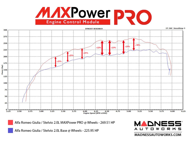 We do not inflate performance gains or use fancy charts/ graphs that show unrealistic power gains. Rarely will you drive your vehicle at speeds and conditions in which you will be able to verify these numbers. Rather than post unrealisting gains or inflated numbers we simply offer our product with a 30 Day Money Back Guarantee. We are confident that trying is believing and driving the vehicle with the MAXPower PRO installed will show you much more than any graph/ chart.