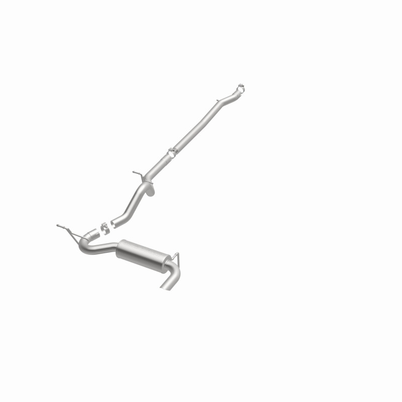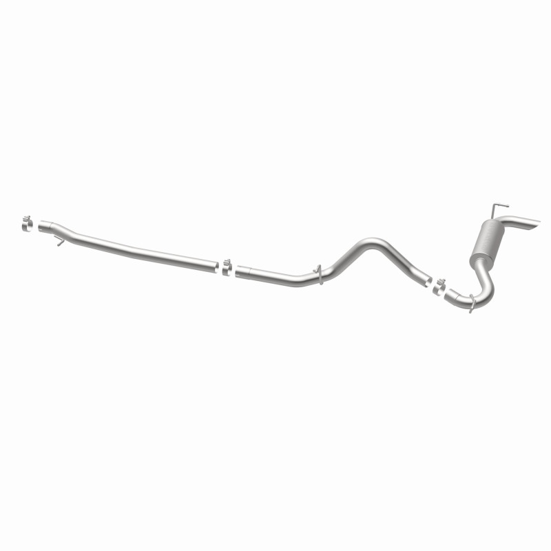 The MagnaFlow 15117 features fast-flowing mandrel bent 2.5-inch main piping and utilizes a single straight-through muffler. The system terminates in a single straight passenger side rear exit with 2.5-inch satin welded-on single wall angle cut edge tips, adding a sporty and refined aesthetic to your vehicle's rear profile.
