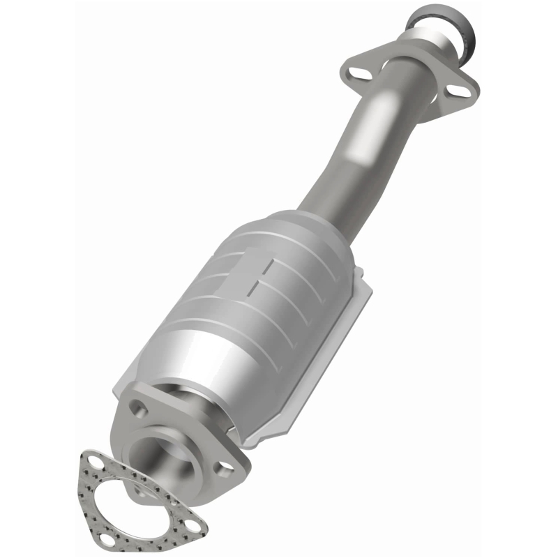 The MagnaFlow Direct Fit Catalytic Converter is crafted with high-quality, corrosion-resistant stainless steel. This robust construction not only extends the lifespan of your converter but also provides superior strength and resilience against the harsh elements that your vehicle may encounter. The free-flowing mandrel-bent tubing maintains the OEM design and geometry. This ensures smooth exhaust flow, resulting in peak fuel economy and optimal engine operation, reminiscent of your vehicle's original specifications.