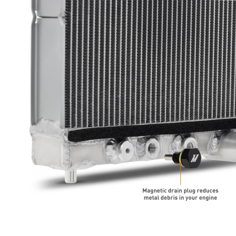 Installation is seamless, with a direct-fit design that eliminates the need for any bumper removal. It offers compatibility with stock hoses and the Mishimoto Silicone Coolant Hose Kit, facilitating an easy, hassle-free upgrade to your vehicle's existing system. Additionally, it is equipped with a magnetic drain plug, affording extra protection by trapping metallic debris, thereby enhancing the longevity of your cooling system. The Mishimoto Lifetime Warranty further assures you of its lasting performance and reliability.