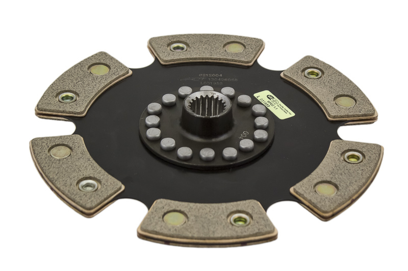 The Honda Civic ACT Race Clutch Disc, model 6212004, provides a seamless blend of durability and performance for racing enthusiasts and professional drivers. Designed specifically for increased performance demands, this 6-pad rigid race disc is crafted with high-quality ceramic friction materials, ensuring optimal performance under extreme conditions. The ceramic material is recognized for its heat resistance and reliability, making this clutch disc particularly suited for high-speed environments where efficient heat management is crucial.