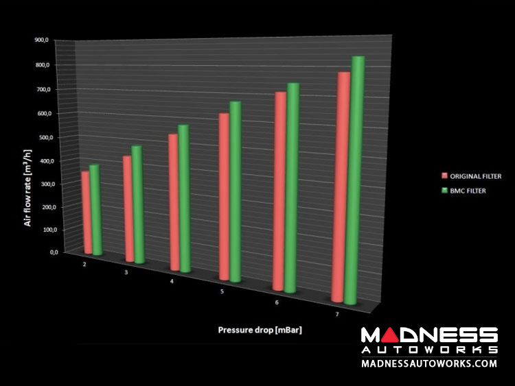 Check out the Air Flow Chart in our additional product pictures for a comparison between the BMC air filter and the OEM paper filter. Note that this chart is for illustrative purposes and does not refer to the present filter.