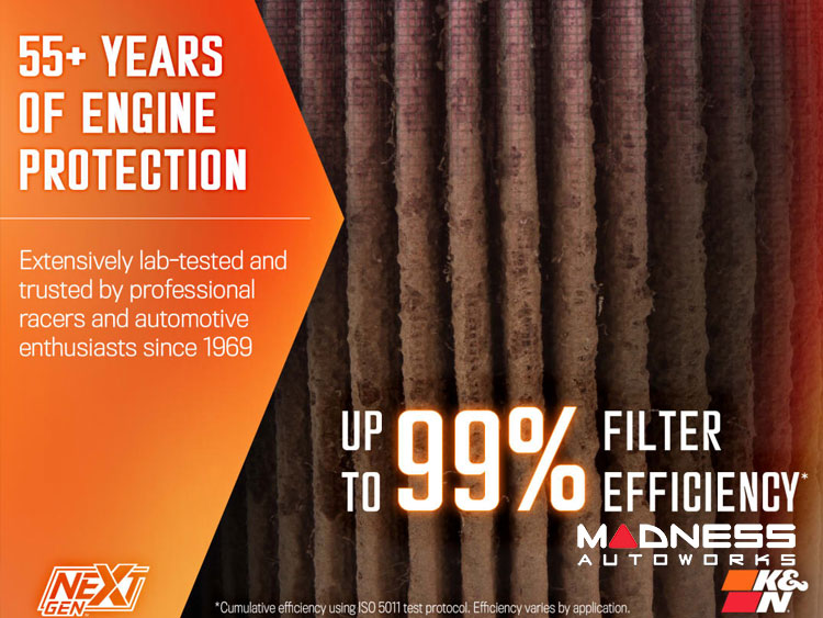 This K&N NextGen cold air intake system is crafted with precision to deliver up to 25.25 horsepower and 30.35 lb-ft of torque without the need for any tuning. The high-density polyethylene (HDPE) rotationally molded tube is designed to increase airflow by 21.6% to your engine, ensuring a significant boost in performance. At its core is K&N's washable, reusable High-Flow LIFETIME Air Filter™ with oiled cotton media, known for its durability and efficiency. The oversized conical style of the filter means you can drive up to 100,000 miles between filter services under normal highway conditions. Additionally, the custom-designed NextGen airbox provides protection from high engine bay temperatures, enhancing the cold air intake’s effectiveness.